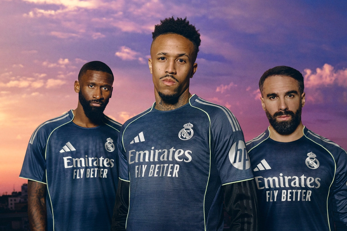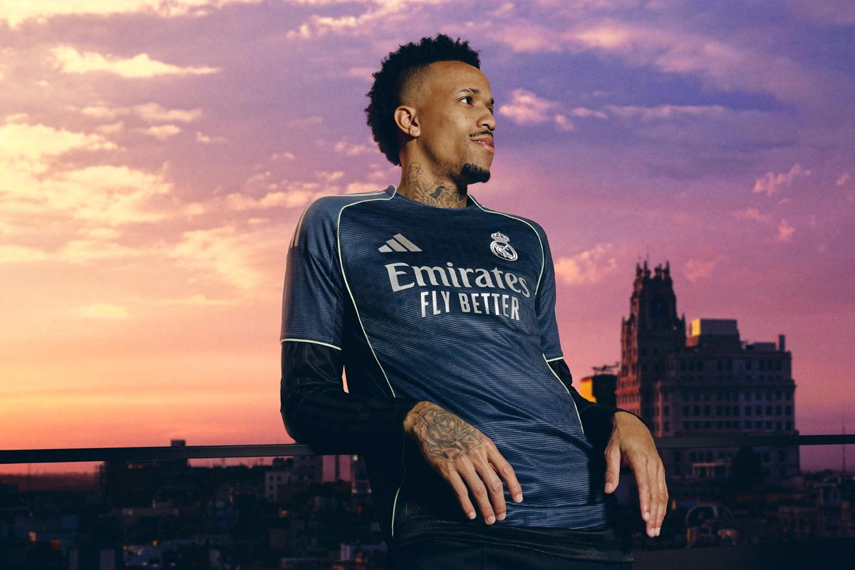 Adidas displays the Real Madrid Away jersey for 2026, created for the Merengues to celebrate the magical Champions League nights at the Bernabéu. With a look inspired by the Champions League night a at the stadium, the jersey features a navy design and an embroidered badge.