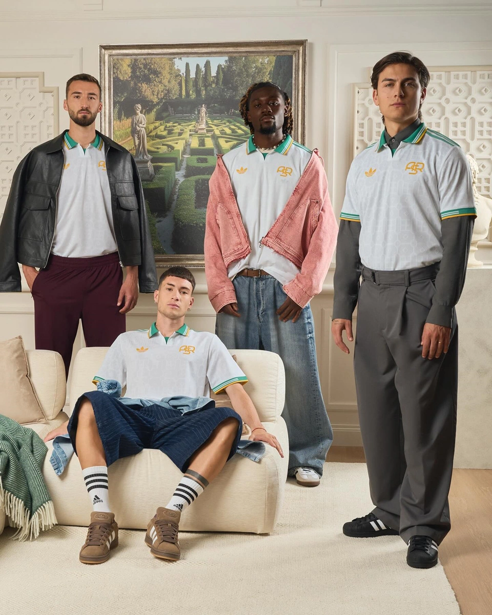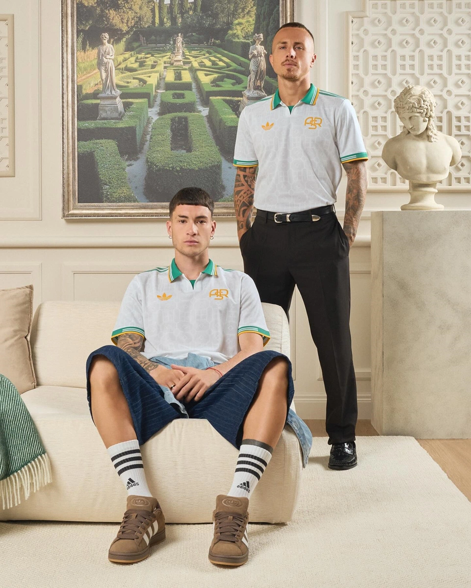 The AS Roma 25/26 Third Replica match shirt is designed to celebrate the fans’ passion and connection with the city of Rome and features a unique design inspired by the greenery of Roman villas, with a pattern that recalls the typical geometries of Italian gardens. The iconic three adidas stripes on the shoulders, the adidas Originals logo, and the traditional “ASR” trigram in a vibrant contrasting yellow create a strong and distinctive visual impact.
