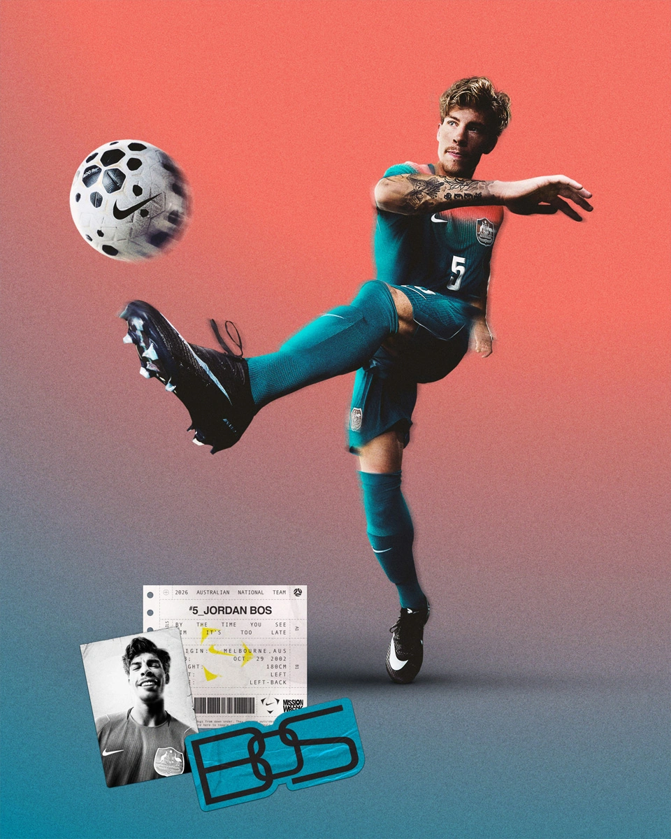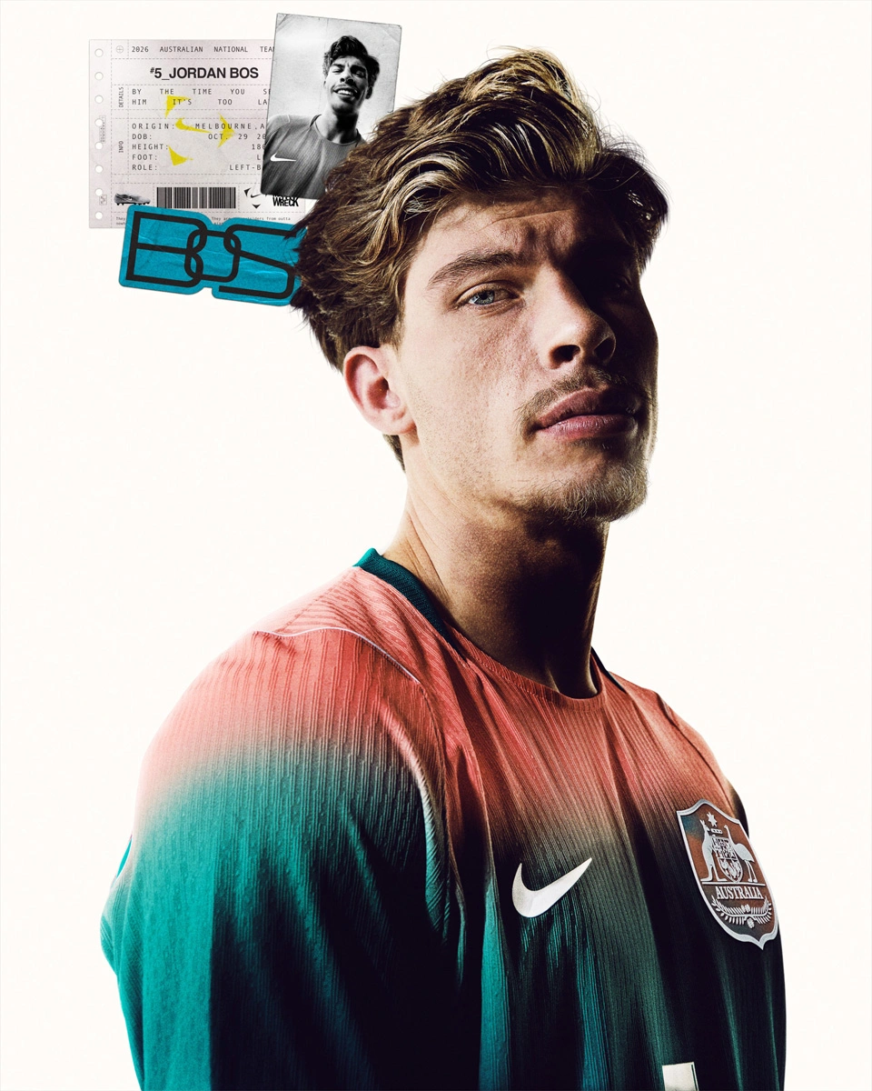 El diseño de la camiseta visitante se inspira en los espectaculares amaneceres de Australia, simbolizando el fuerte impulso y el potencial ilimitado del fútbol local de cara al futuro. La mezcla degradada de coral y verde intenso captura vívidamente esa energía creciente y progresiva; mientras que el escudo de la selección nacional, creado con tecnología de lentes holográficas, introduce un ritmo visual futurista y multidimensional en la camiseta.
