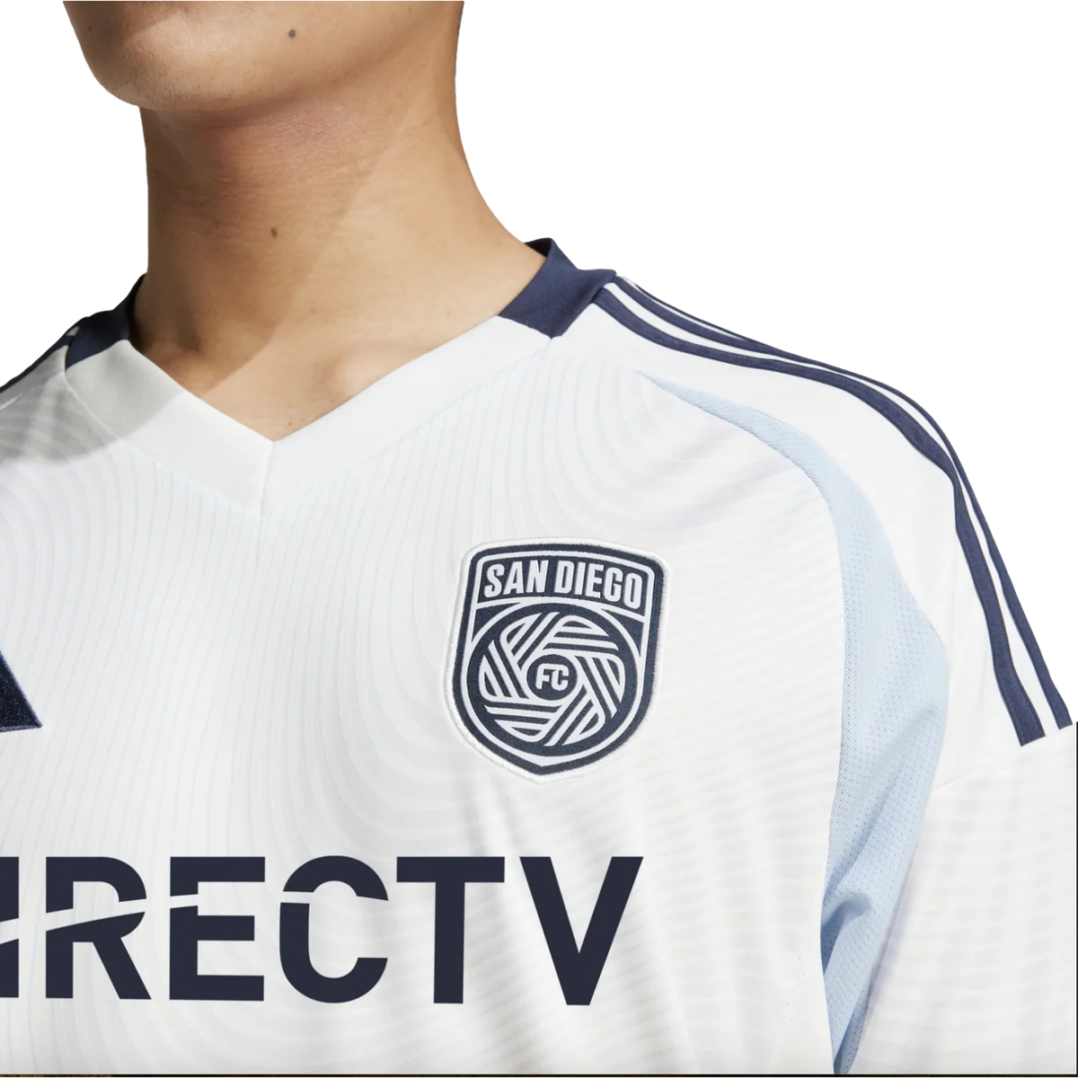 Woven into one. As San Diego FC hit the road in their inaugural season, the wavy all-over graphic and back neck signoff on this adidas away jersey reflect the cohesive community of their home city. AEROREADY controls moisture to keep soccer fans comfortable. A sewn-on club crest shows you and your club stand shoulder to shoulder. This product is made with 100% recycled materials. By reusing materials that have already been created, we help to reduce waste and our reliance on finite resources and reduce the footprint of the products we make.